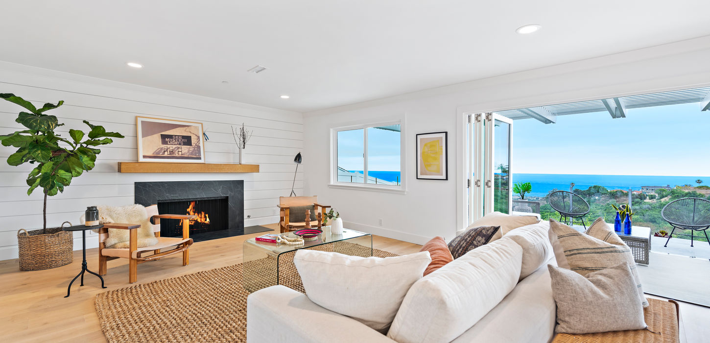 This Huntington Beach home was completely reimagined to capture the light, flow, and relaxed elegance of Southern California living. The remodel features a bright open-concept layout connecting the kitchen, dining, and living areas with sweeping hillside and ocean views.